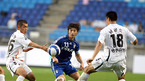 삼성 하우젠K-리그 수원 삼성과 광주 상무의 경기가 15일 수원 월드컵구장에서 벌어졌다. 관중석 난입 파동으로 심적 고통을 겪고 있는 안정환이 선발 출장한 가운데 수원은 0-0으로 비겨 7연승에 실패했다. 후반 수원 이관우가 광주 남궁도와 고창현의 가운데를 뜷고 있다./수원=손용호 기자 spjj@osen.co.kr [Copyright...