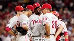 20일(한국시간) 세인트루이스의 부시 스타디움에서 벌어진 세인트루이스 카디널스와 필라델피아 필리스의 경기 6회말 2사 만루 데이브 엑스타인 타석 때 리치 더비 투수코치가 마운드에 올라 투수 제이미 모이어와 선수들에게 지시를 내리고 있다./부시스타디움(세인트루이스)=주지영 특파원 jj0jj0@osen.co.kr [Copyright ⓒ 한국 최고의...