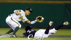 2007 프로야구 현대 유니콘스와 두산 베어스의 경기가 19승을 거두고 있는 두산 리오스와 현대 김수경이 선발 대결을 벌인 가운데 20일 수원야구장에서 벌어졌다. 1회초 무사 1루서 볼넷으로 진루한 이종욱이 2루 도루에 성공, 선제점의 발판을 만들고 있다. 현대 2루수는 김일경./수원=손용호 기자spjj@osen.co.kr <2007 삼성 PAVV...