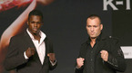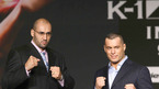 오는 29일 서울 올림픽공원 제1체육관에서 열리는 K-1 월드그랑프리 파이널 16강전에 앞서 출전 선수들의 기자회견이 28일 서울 삼성동 인터컨티넨탈 호텔에서 열렸다. 맞대결을 벌일 세미 쉴트(왼쪽)와 폴 슬로윈스키가 취재진을 향해 포즈를 취하고 있다./김영민 기자ajyoung@osen.co.kr [Copyright ⓒ 한국 최고의 스포츠...