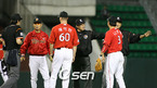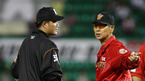 2007 프로야구 SK가 페넌트레이스 우승을 위한 매직넘버 1을 남겨 놓은 가운데 LG 트윈스와 SK 와이번스의 경기가 28일 잠실야구장에서 벌어졌다. 4회말 1사 2루 조인성의 큰 외야플라이때 SK 김성근 감독이 2루주자 최동수가 포구를 하기 전 2루 베이스에서 발이 떨어졌다며 항의하다 받아들여지지 않자 선수들에게 철수하라는 제스쳐를 취하고...