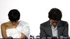 SBS의 야심작 '로비스트' 극장시사회겸 기자간담회가 28일 코엑스 메가박스에서 장진영 송일국 한재석 등 주요 출연진, 이현직 PD와 김영섭CP 등이 참가한 가운데 열렸다. '영어 대사가 많아서 어땠느냐'는 질문에 장진영과 송일국이 고개를 떨구고 들지 못하고 있다./손용호 기자spjj@osen.co.kr...