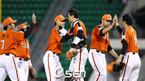 2007 삼성PAVV 프로야구 LG 트윈스와 한화 이글스의 경기가 1일 잠실 야구장에서 벌어졌다. 3-2로 승리를 거둔 한화 선수들이 기쁨을 나누고 있다./잠실=김영민 기자ajyoung@osen.co.kr <2007 삼성 PAVV 프로야구> [Copyright ⓒ 한국 최고의 스포츠 엔터테인먼트 전문 미디어 OSEN(www.osen.co.kr)...