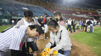 2007 삼성PAVV 프로야구 LG 트윈스와 한화 이글스의 경기가 1일 잠실 야구장에서 벌어졌다. 시즌 마지막 홈경기를 치른 LG는 경기 후 추첨에 당첨된 팬들과 함께 다과회로 즐거운 시간을 보냈다. 김재박 감독이 팬에게 사인해주고 있다./잠실=김영민 기자ajyoung@osen.co.kr <2007 삼성 PAVV 프로야구> [Copyright ⓒ...
