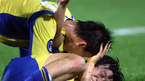 2007 AFC(아시아축구연맹) 챔피언스리그 4강 1차전 성남 일화와 우라와 레즈의 경기가 3일 성남 탄천종합운동장에서 벌어졌다. 후반 성남의 김두현이 2-2 동점골을 터뜨리자 김동현이 달려와 위에 올라타고 있다./성남=손용호 기자spjj@osen.co.kr [Copyright ⓒ 한국 최고의 스포츠 엔터테인먼트 전문 미디어...
