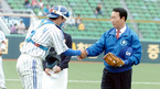 3일 대구구장에서 열리는 한화와의 홈경기에 앞서 '경대인의 날'을 맞아 이날 시구에 나선 장광수 경북대 총동창회장이 시구 후 삼성 포수 이정식과 악수를 나누고 있다. / 삼성 라이온즈 제공. what@osen.co.kr <2007 삼성 PAVV 프로야구> [Copyright ⓒ 한국 최고의 스포츠 엔터테인먼트 전문 미디어...