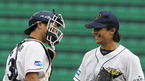 2007 삼성PAVV 프로야구 두산 베어스와 현대 유니콘스의 경기가 3일 잠실 야구장에서 벌어졌다. 두산의 리오스가 9회 1사까지 퍼펙트를 기록했으나 현대 강귀태의 안타로 기록이 깨지자 포수 채상병이 마운드에 올라 미소지으며 함께 아쉬움을 달래고 있다. 두산이 3-2로 승리, 리오스는 22승을 달성했다. /잠실=황세준 기자 storkjoon@osen...