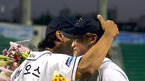 2007 프로야구 정규리그 2위를 굳힌 두산 베어스와 한화 이글스의 경기가 4일 잠실야구장에서 벌어졌다.경기에 앞서 리오스의 20승 달성을 기념하는 축하행사가 열렸다. 홍성흔이 리오스에게 꽃다발을 건네며 진한 포옹을 하고 있다./잠실=손용호 기자spjj@osen.co.kr <2007 삼성 PAVV 프로야구> [Copyright ⓒ 한국 최고의...