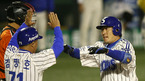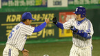 2007 프로야구 삼성 라이온즈와 한화 이글스의 준플레이오프 2차전이 10일 대구 구장에서 벌어졌다. 2회말 2사 후 삼성 진갑용이 좌측 펜스를 넘어가는 솔로 홈런을 치고 류중일 3루코치의 환영을 받고 있다./대구=손용호 기자spjj@osen.co.kr <2007 삼성 PAVV 프로야구> [Copyright ⓒ 한국 최고의 스포츠 엔터테인먼트...