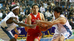 2007-2008 프로농구 전주 KCC와 울산 모비스의 시범경기가 11일 전주 실내체육관에서 벌어졌다. 1쿼터 전주 로빈슨이 울산 수비 두명사이에서 슛을 시도하고 있다./전주=손용호 기자spjj@osen.co.kr [Copyright ⓒ 한국 최고의 스포츠 엔터테인먼트 전문 미디어 OSEN(www.osen.co.kr) 무단전재 및 재배포 금지]