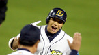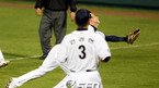 2007 프로야구 플레이오프 2차전 두산 베어스와 한화 이글스 경기가 15일 저녁 잠실구장에서 벌어졌다.두산의 1회초 선두타자 이종욱이 우월 솔로 홈런을 날리고 홈인 환호 하고 있다./잠실=김영민 기자ajyoung@osen.co.kr <2007 삼성 PAVV 프로야구> [Copyright ⓒ 한국 최고의 스포츠 엔터테인먼트 전문 미디어...