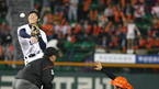 2007 프로야구 두산 베어스와 한화 이글스의 플레이오프 2차전이 15일 잠실야구장에서 벌어졌다. 2회초 1사 1루 김민재의 파울타구를 두산 고영민이 쫒아가 몸을 날렸지만 놓치고 있다./잠실=손용호 기자spjj@osen.co.k <2007 삼성 PAVV 프로야구> [Copyright ⓒ 한국 최고의 스포츠 엔터테인먼트 전문 미디어...