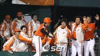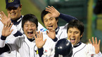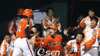 2007 프로야구 플레이오프 2차전 두산 베어스와 한화 이글스 경기가 15일 저녁 잠실구장에서 벌어졌다.한화의 2회초 2사 1,3루 연경흠의 적시타때 2루 주자 한상훈 역전 득점을 올리며 동료로 부터 축하를 받고 있다./잠실=김영민 기자ajyoung@osen.co.kr <2007 삼성 PAVV 프로야구> [Copyright ⓒ 한국 최고의...
