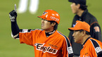 2007 프로야구 두산 베어스와 한화 이글스의 플레이오프 2차전이 15일 잠실야구장에서 벌어졌다. 2회초 2사 1,2루서 연경흠이 역전타를 치고 좋아하고 있다./잠실=손용호 기자spjj@osen.co.k <2007 삼성 PAVV 프로야구> [Copyright ⓒ 한국 최고의 스포츠 엔터테인먼트 전문 미디어 OSEN(www.osen.co.kr)...