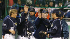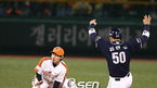 2007 프로야구 플레이오프 3차전 두산 베어스와 한화 이글스 경기가 17일 저녁 대전구장에서 벌어졌다. 두산의 7회초 1사 만루 홍성흔 타석 때 한화 투수 세드릭의 와일드 피칭으로 3루주자 이종욱이 5-0을 만들며 환호하고 있다./대전=김영민 기자ajyoung@osen.co.kr <2007 삼성 PAVV 프로야구> [Copyright ⓒ 한국...