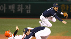 2007 프로야구 플레이오프 3차전 두산 베어스와 한화 이글스 경기가 17일 저녁 대전구장에서 벌어졌다. 한화의 4회말 무사 1루서 김태균의 유격수 땅볼 때 1루주자 크루즈가 2루에서 포스아웃된 뒤 1루를 바라보고 있다./대전=김영민 기자ajyoung@osen.co.kr <2007 삼성 PAVV 프로야구> [Copyright ⓒ 한국 최고의...