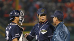 2007 프로야구 플레이오프 3차전 두산 베어스와 한화 이글스 경기가 17일 저녁 대전구장에서 벌어졌다. 한화의 7회말 2사 후 이범호 타석 때 두산 선발투수 김명제가 초구에 높은 볼을 던지자 윤석환 투수코치가 나와 이승학으로 교체하고 있다./대전=김영민 기자ajyoung@osen.co.kr <2007 삼성 PAVV 프로야구>...