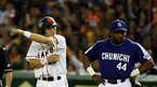 요미우리 자이언츠와 주니치 드래건스의 센트럴리그 클라이맥스시리즈 2스테이지 1차전 경기가 18일 도쿄돔에서 벌어져 주니치가 우즈의 투런홈런을 앞세워 5-2로 승리했다. 이승엽은 2안타를 치며 분전했지만 팀의 패배로 빛이 바랬다. 이병규는 1볼넷에 무안타로 부진했다. 8회말 수비를 마친 이병규가 덕아웃으로 향하다 주자로 나가 있던 이승엽과 눈빛을...