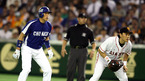 요미우리 자이언츠와 주니치 드래건스의 센트럴리그 클라이맥스시리즈 2스테이지 1차전 경기가 18일 도쿄돔에서 벌어졌다. 1회초 2사 만루 이병규의 1루땅볼을 투수에게 토스 아웃처리한 이승엽이 이병규를 지나 덕아웃으로 향하고 있다./도쿄돔=손용호 기자spjj@osen.co.kr <2007 삼성 PAVV 프로야구> [Copyright ⓒ 한국 최고의...
