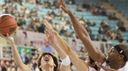 '2007-2008 SK텔레콤 T 프로농구' 서울 SK와 울산 모비스와의 서울 개막전이 20일 잠실학생체육관에서 열렸다. SK텔레콤의 후원을 받고 있는 수영 스타 박태환이 경기에 앞서 점프볼 시구를 한 데 이어 하프타임에는 SK 나이츠 유니폼을 입고 나와 기념볼을 관중들에게 던져주고 있다. /잠실학생체=황세준 기자...