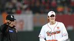 2007 프로야구 한국시리즈 1차전 SK 와이번스와 두산 베어스 경기가 22일 저녁 인천 문학야구장에서 벌어졌다. 경기 전 마린보이 박태환이 조종규 구심의 플레이볼 사인에 따라 시구에 들어가고 있다./인천=김영민 기자ajyoung@osen.co.kr <2007 삼성 PAVV 프로야구> [Copyright ⓒ 한국 최고의 스포츠 엔터테인먼트 전문...