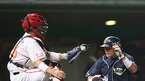2007 프로야구 한국시리즈 1차전 SK 와이번스와 두산 베어스 경기가 22일 저녁 인천 문학야구장에서 벌어졌다. 두산의 1회초 1사 2루서 김동주의 파울 타구를 손에 맞은 SK 포수 박경완이 괴로워 하자 김동주가 '괜찮냐'고 묻고 있다./인천=손용호 기자spjj@osen.co.kr <2007 삼성 PAVV 프로야구>...