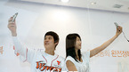 2007 프로야구 한국시리즈 1차전 SK 와이번스와 두산 베어스 경기가 22일 저녁 인천 문학야구장에서 벌어졌다. 이날 시구를 맡은 수영 스타 박태환이 1층 출구에 마련된 SK 텔레콤 부스에서 영상통화 시연을 하고 있다./인천=김영민 기자ajyoung@osen.co.kr <2007 삼성 PAVV 프로야구> [Copyright ⓒ 한국 최고의...