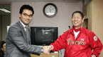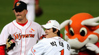2007 프로야구 한국시리즈 1차전 SK 와이번스와 두산 베어스 경기가 22일 저녁 인천 문학야구장에서 벌어졌다. 박찬호가 경기장을 방문, 김성근 감독과 인사를 나누고 있다./사진=SK 와이번스 제공. <2007 삼성 PAVV 프로야구> [Copyright ⓒ 한국 최고의 스포츠 엔터테인먼트 전문 미디어 OSEN(www.osen.co.kr)...