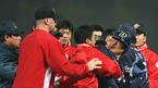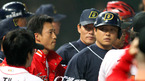 2007 프로야구 한국시리즈 2차전 SK 와이번스와 두산 베어스 경기가 23일 저녁 인천 문학야구장에서 벌어졌다.두산의 6회초 선두타자 김동주가 SK 채상병 투수로 부터 몸에 맞는 볼을 맞고 채상병 투수에게 빈볼 항의에 양팀 선수들이 그라운드에 진입 분위기가 험악해 지는 상황에서 SK 김재현이 두산 김동주를 진정 시키고 있다./인천=김영민...