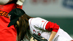 2007 프로야구 한국시리즈 2차전 SK 와이번스와 두산 베어스 경기가 23일 저녁 인천 문학야구장에서 벌어졌다.경기에 앞서 시구자로 나선 이현지가 론진 가루를 만지며 시구 준비를 하고 있다./인천=김영민 기자ajyoung@osen.co.kr <2007 삼성 PAVV 프로야구> [Copyright ⓒ 한국 최고의 스포츠 엔터테인먼트 전문 미디어...