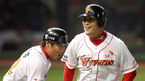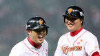 2007 프로야구 한국시리즈 2차전 SK 와이번스와 두산 베어스 경기가 23일 저녁 인천 문학야구장에서 벌어졌다.SK의 1회초 2사 1루 이호준이 우월투런 홈런을 날리고 선행주자 이진영의 축하를 받으며 홈인 환호하고 있다./인천=김영민 기자ajyoung@osen.co.kr <2007 삼성 PAVV 프로야구> [Copyright ⓒ 한국 최고의...