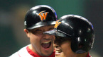 2007 프로야구 한국시리즈 2차전 SK 와이번스와 두산 베어스 경기가 23일 저녁 인천 문학야구장에서 벌어졌다.두산의 3회초 2사 1루 고영민 좌월 동점 투런 홈런을 날리고 홈인 환호 하고 있다./인천=김영민 기자ajyoung@osen.co.kr <2007 삼성 PAVV 프로야구> [Copyright ⓒ 한국 최고의 스포츠 엔터테인먼트 전문...