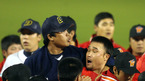 2007 프로야구 한국시리즈 3차전 SK 와이번스와 두산 베어스 경기가 25일 잠실야구장에서 벌어졌다. 6회초 1사 후 두산이 연이은 실책 등으로 7점을 내준 상태서 두산 투수 이혜천의 투구가 김재현의 다리 쪽으로 와 빈볼 시비가 일어 양팀 선수들이 몰려 나와 몸싸움을 벌였다. 홍성흔이 흥분한 리오스를 달래고 있다./잠실=손용호...