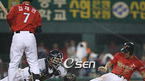 2007 프로야구 한국시리즈 3차전 SK 와이번스와 두산 베어스 경기가 25일 잠실야구장에서 벌어졌다. SK의 6회초 1사 2,3루 김재현 타석 때 패스트볼이 나오자 3루주자 정근우가 홈인하고 있다./잠실=김영민 기자ajyoung@osen.co.kr <2007 삼성 PAVV 프로야구> [Copyright ⓒ 한국 최고의 스포츠 엔터테인먼트 전문...