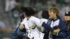 2007 프로야구 한국시리즈 3차전 SK 와이번스와 두산 베어스 경기가 25일 잠실야구장에서 벌어졌다. 6회초 1사 후 두산이 연이은 실책 등으로 7점을 내준 상태서 두산 투수 이혜천의 투구가 김재현의 다리 쪽으로 와 빈볼 시비가 일어 양팀 선수들이 몰려 나와 몸싸움을 벌였다. 홍성흔이 흥분한 리오스를 말리고 있다./잠실=손용호...