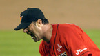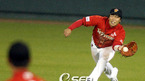 2007 프로야구 한국시리즈 3차전 SK 와이번스와 두산 베어스 경기가 25일 잠실야구장에서 벌어졌다. 5회말 1사 1,2루서 채상병을 우익수 플라이로 잡은 데 이어 민병헌을 우중간 깊숙한 플라이로 처리한 SK 선발투수 로마노가 주먹을 불끈 쥐고 있다./잠실=손용호 기자spjj@osen.co.kr <2007 삼성 PAVV 프로야구>...