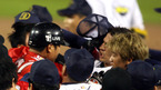 2007 프로야구 한국시리즈 3차전 SK 와이번스와 두산 베어스 경기가 25일 잠실야구장에서 벌어졌다. 6회초 1사 후 두산이 연이은 실책 등으로 7점을 내준 상태서 두산 투수 이혜천의 투구가 김재현의 다리 쪽으로 오자 빈볼 시비가 일면서 양 팀 선수들이 몸싸움을 벌였다. 가운데서 몸싸움을 벌이고 있는 이호준과 리오스를 양 팀 선수들이 말리고...