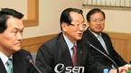 한국시리즈 4차전이 열리는 26일 잠실야구장 소회의실에서 김지완 현대증권 대표이사, 박주원 안산시장, 신상우 KBO 총재,이종수 현대건설 대표이사가 '안산 문화복합돔구장 건립사업 협약체결식'을 가졌다. 신상우 총재가 모두 발언을 하고 있다./잠실=손용호 기자spjj@osen.co.kr <2007 삼성 PAVV 프로야구>...