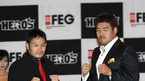 오는 28일 장충체육관에서 열리는 '올림피아 히어로스 코리아 2007' 공식 기자회견이 26일 밀레니엄 서울 힐튼호텔 그랜드볼룸에서 열렸다. 김민수(오른쪽)가 상대인 미노와 맨과 취재진을 향해 포즈를 취하고 있다./김영민 기자ajyoung@osen.co.kr [Copyright ⓒ 한국 최고의 스포츠 엔터테인먼트 전문 미디어...