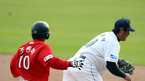 2007 프로야구 두산 베어스와 SK 와이번스의 한국시리즈 5차전 경기가 27일 잠실야구장에서 벌어져 8회초 고영민의 악송구 생긴 찬스에서 4득점한 SK가 두산을 4-0으로 물리치고 한국시리즈 우승에 1경기를 남겨 놓았다. 8회초 조동화의 안타성 타구를 다이빙캐치한 고영민이 1루에 악송구하자 조동화가 2루로 달리고 있다./잠실=손용호...
