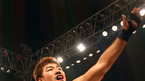 '올림피아 히어로스 코리아 2007' 대회가 28일 장충체육관에서 벌어졌다. 제7경기로 벌어진 김민수와 미노와 맨의 경기서 김민수가 1라운드 TKO승을 거두었다. 김민수가 링을 잡고 관중석으로 향해 승리의 세리머니를 연출하고 있다./장충체=손용호 기자spjj@osen.co.kr [Copyright ⓒ 한국 최고의 스포츠 엔터테인먼트...