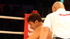 '올림피아 히어로스 코리아 2007' 대회가 28일 장충체육관에서 벌어졌다. 제7경기로 벌어진 김민수와 미노와 맨의 경기서 이태현이 1라운드에 TKO승을 거두었다. 김민수가 로프에 매달려 춤을 추고 있다./장충체=손용호 기자spjj@osen.co.kr [Copyright ⓒ 한국 최고의 스포츠 엔터테인먼트 전문 미디어...