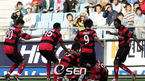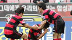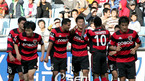 2007 K리그 울산 현대와 포항 스틸러스의 준플레이오프 경기가 28일 울산 문수월드컵경기장에서 벌어졌다. 전반 34분 헤딩으로 선제골을 성공시킨 포항 황재원(오른쪽에서 세 번째)이 동료들의 축하를 받고 있다. /울산=황세준 기자 storkjoon@osen.co.kr [Copyright ⓒ 한국 최고의 스포츠 엔터테인먼트 전문 미디어...