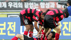 2007 K리그 울산 현대와 포항 스틸러스의 준플레이오프 경기가 28일 울산 문수월드컵경기장에서 벌어져 포항이 이광재의 결승골로 2-1 승리를 거뒀다. 포항 선수들이 경기를 마치고 서포터스들과 함께 응원가를 부르고 있다. /울산=황세준 기자 storkjoon@osen.co.kr [Copyright ⓒ 한국 최고의 스포츠 엔터테인먼트 전문 미디어...