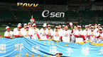 2007 한국시리즈 우승컵은 SK 와이번스의 품에 안겼다. SK는 29일 인천 문학야구장에서 벌어진 6차전에서 두산에 3-1로 승리, 2패 뒤 4연승을 하는 대역전극으로 한국시리즈 우승을 차지했다. 시상대에 양 팀 선수들이 올라 있다./인천=김영민 기자ajyoung@osen.co.kr <2007 삼성 PAVV 프로야구> [Copyright ⓒ 한국...