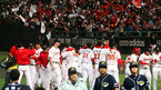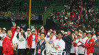2007 프로야구 한국시리즈 6차전 SK 와이번스와 두산 베어스의 경기가 29일 인천 문학경기장에서 벌어져 SK가 5-2으로 승리, 2패 후 파죽의 4연승을 거두고 한국시리즈 우승을 차지했다. 선수단이 우승 트로피를 들고 팬들에게 손을 들어 인사하고 있다. /인천=황세준 기자 storkjoon@osen.co.kr <2007 삼성 PAVV 프로야구>...