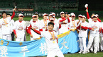 2007 한국시리즈 우승컵은 SK 와이번스의 품에 안겼다. SK는 29일 인천 문학야구장에서 벌어진 6차전에서 두산에 3-1로 승리, 2패 에 4연승을 하는 대역전극으로 한국시리즈 우승을 차지했다. 동료들이 선수 생활에서 처음으로 우승을 맛본 주장 김원형을 헹가래 치고 있다./인천=김영민 기자ajyoung@osen.co.kr <2007 삼성 PAVV...