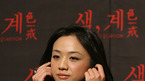 영화 '색,계'의 이안 감독과 신인여배우 탕웨이 내한 기자회견이 29일 오전 장충동 신라호텔 다이너스티홀 에서 열렸다.탕웨이가 이안 감독에 대해서 "교장선생님 같이 영화에서 많은 것을 가르쳐 주셨고, 모든 것을 버리고 새로운 방식으로 표현하는 방법을 배웠다"며 기자회견을 하고 있다./김영민...
