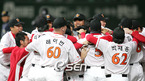 2007 프로야구 한국시리즈 6차전 SK 와이번스와 두산 베어스의 경기가 29일 인천 문학경기장에서 벌어져 SK가 5-2으로 승리, 2패 후 파죽의 4연승을 거두고 한국시리즈 우승을 차지했다. 선수와 코칭스태프 모두가 마운드에 올라 김성근 감독을 헹가래 치고 있다. /인천=황세준 기자 storkjoon@osen.co.kr <2007 삼성 PAVV...