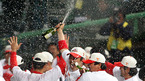 2007 프로야구 한국시리즈 6차전 SK 와이번스와 두산 베어스의 경기가 29일 인천 문학경기장에서 벌어져 SK가 5-2으로 승리, 2패 후 파죽의 4연승을 거두고 한국시리즈 우승을 차지했다. 선수와 코칭스태프 모두가 샴페인을 뿌리며 한국시리즈 우승의 기쁨을 만끽하고 있다. /인천=황세준 기자 storkjoon@osen.co.kr <2007 삼성...